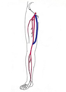 以下はバイパス手術の一例です。赤い部分が動脈で、青部位がバイパスした血管です。
